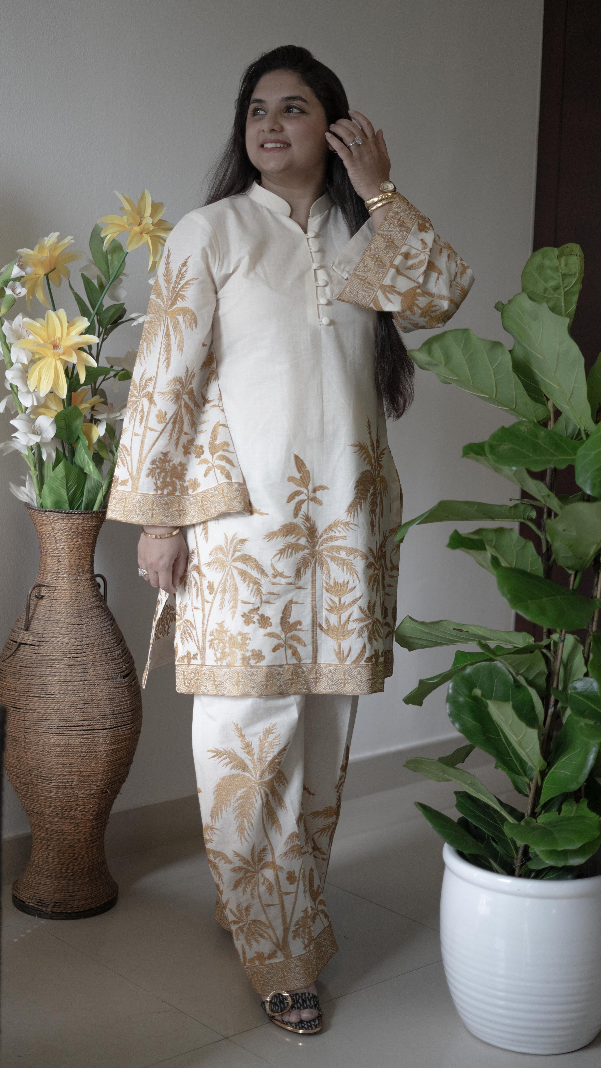 Redefine everyday elegance with Kasavrah’s cotton co-ord set, crafted from breathable, lightweight cotton that keeps you cool and stylish. This matching top and bottom set blends comfort with chic minimalism, making it perfect for brunches, casual outings, festive gatherings, or even relaxed office days.