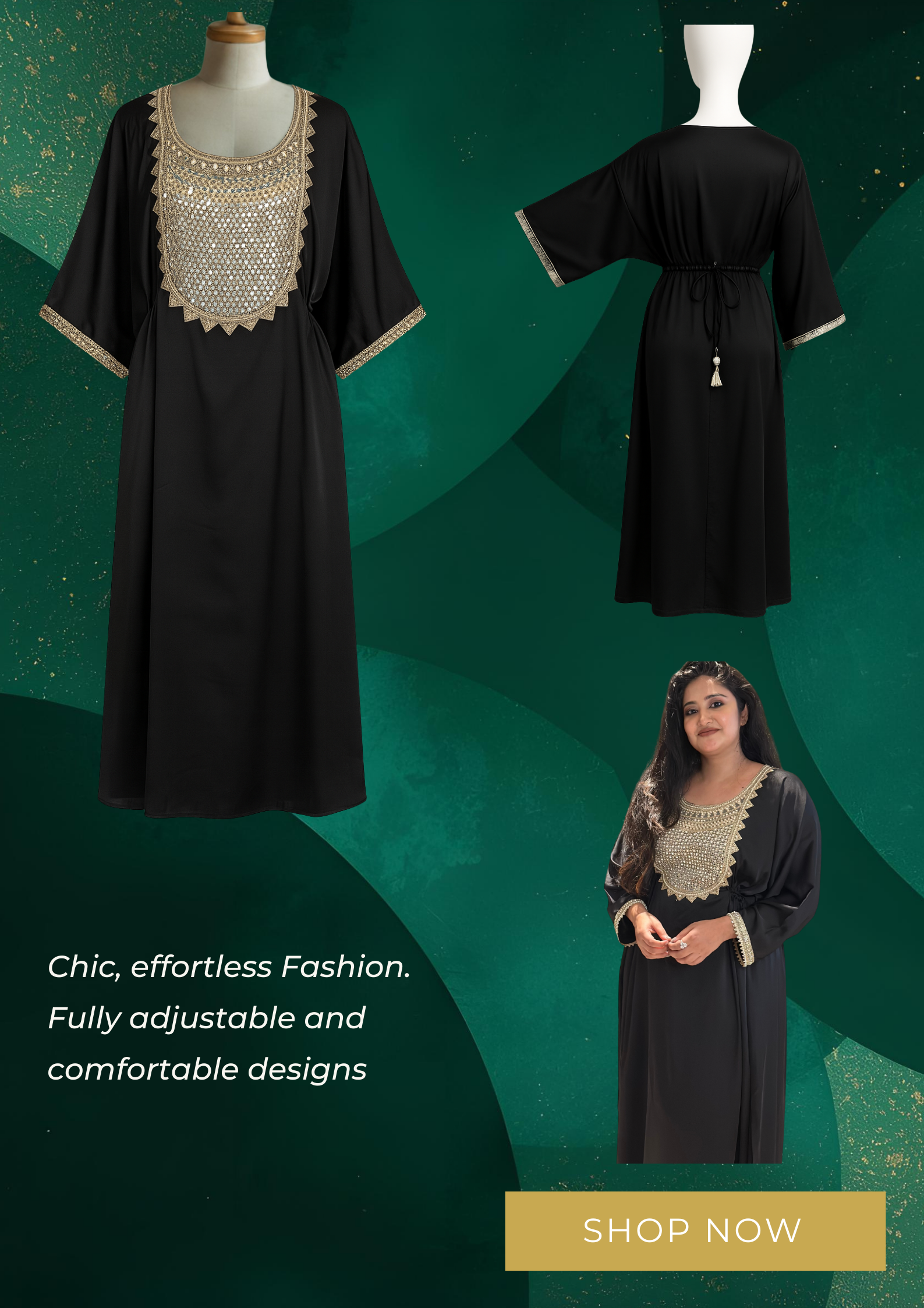 With intricate detailing, rich colors, and graceful cuts, each kaftan reflects a balance of tradition and contemporary fashion. Easy to wear and endlessly stylish, our kaftans bring together comfort, confidence, and sophistication in one statement piece.